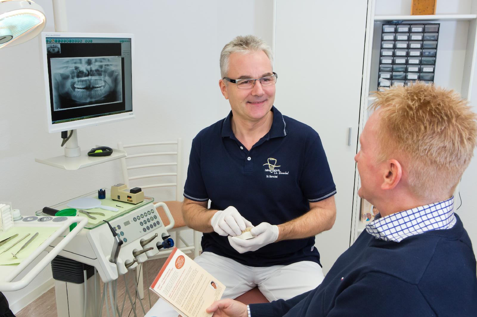 Seit 1992 führt Dr. Borschel die Praxis mit dem Anspruch, moderne Zahnmedizin stets im Sinne seiner Patientinnen und Patienten umzusetzen. Viele von ihnen schenken ihm bereits seit Jahrzehnten ihr Vertrauen. Gemeinsam mit seinem Team bietet er Ihnen eine umfassende Betreuung auf höchstem Niveau – von der Prophylaxe bis hin zu komplexen implantologischen Behandlungen.