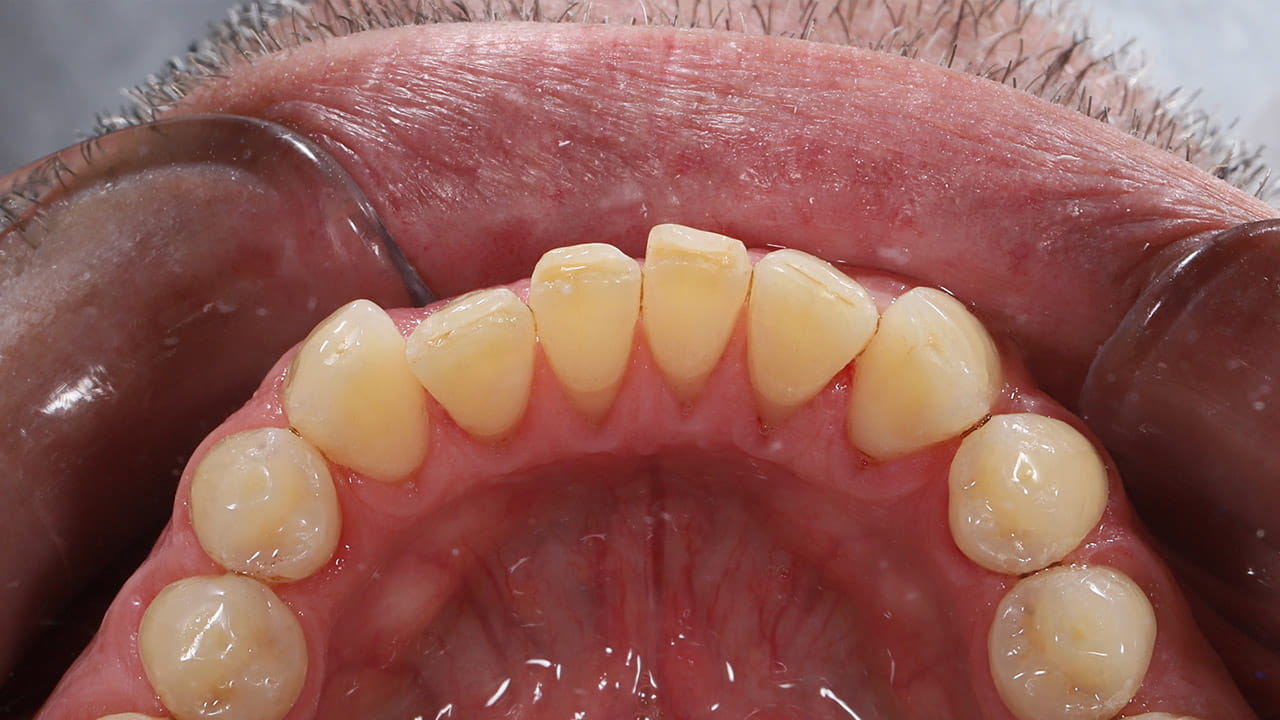 Die professionelle Reinigung entfernt hartnäckige Ablagerungen, die mit der Zahnbürste nicht erreichbar sind.